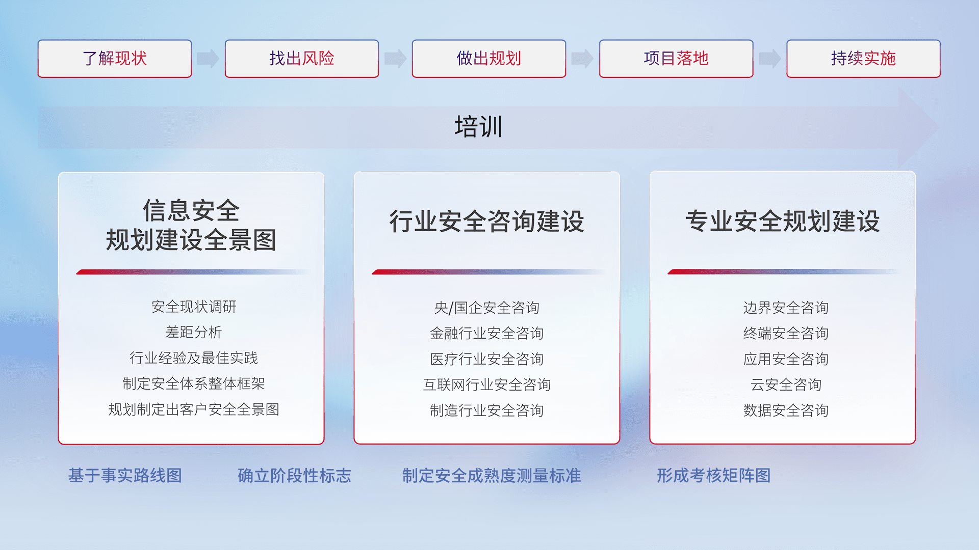 梳理客户信息安全现状调研、、差距分析结果,,,,结合行业先进经验及最佳实践,,制订客户的信息安全管控体系总结架构,,,,最终形成一个完整的客户信息安全规划与建设的全景图。。。。